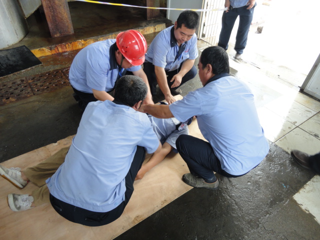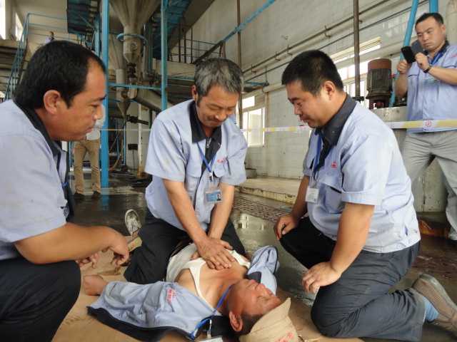 為提高全員安全生產(chǎn)意識,增強(qiáng)員工在緊急情況下的應(yīng)變處理能力、自我防護(hù)能力,使每個(gè)員工都能掌握一定的消防安全知識和觸電先期救援工作,消除火災(zāi)隱患,學(xué)習(xí)有關(guān)防火、觸電急救的相關(guān)知識和消防器材的使用方法,掌握消防逃生技能及注意事項(xiàng)等,我廠以“安全生產(chǎn)月”為契機(jī),圍繞“全員關(guān)注消防,生命至高無上”,于2013年6月18日上午開展了火災(zāi)應(yīng)急和觸電救援演練,縣鹽務(wù)局行管處張?zhí)庨L等人來指導(dǎo)觀摩。